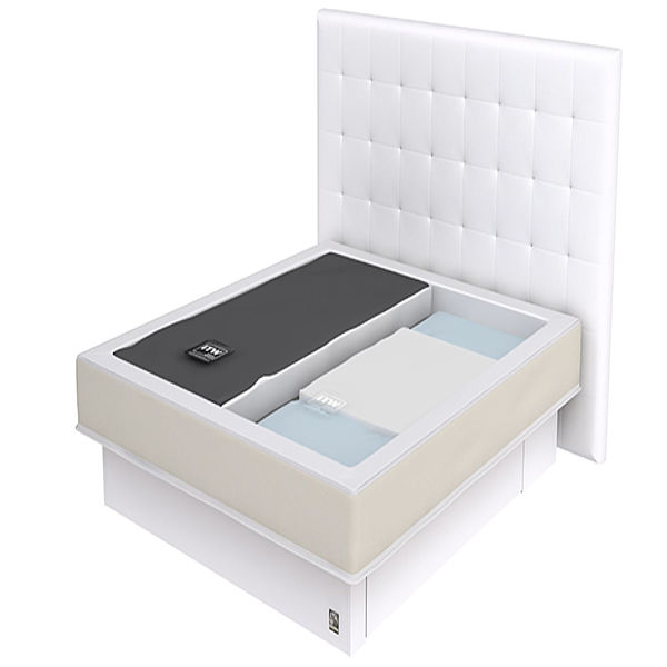 Der Topper besticht durch seine Luftigkeit und kann auch in trendigen, sehr hohen Versionen eingesetzt werden. „Boxspring“ ist damit auf jedem Wasserbett umsetzbar.